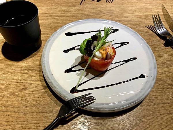 蕃茄海鮮沙拉盅裡面有放一些海鮮食材 ~~~