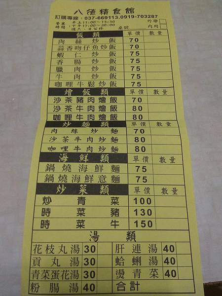 以下是菜單: