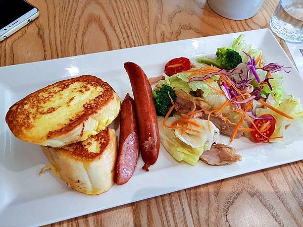 法國吐司做的很好吃, 中間軟軟的, 感覺沾了很多蛋汁, 我挺喜歡