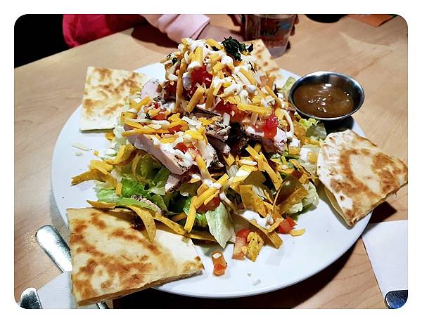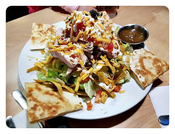 沙拉部份: 一整個弄的很豪華啊, 有餅鋪在上面, 感覺像Mexico style??